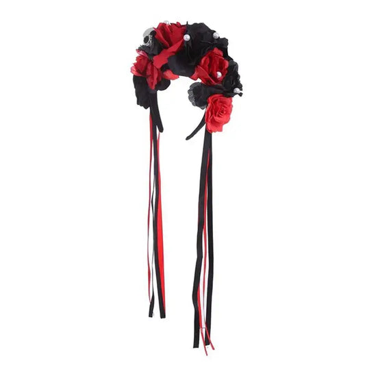 Skull Headband for Women Pearl Rose Ribbons Hair Accessories for Halloween Realistic Mystery Headwear for Ceremony Portable