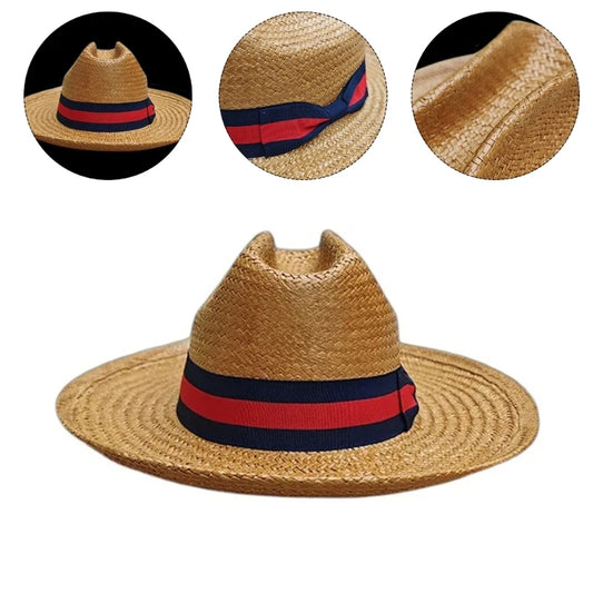 Wovenbelt Cowboy Hat for Girl Western Panamas Hat Handwoven Straw Hat Beach Vacation Picnics Hat Elegant Straw Sun Hat