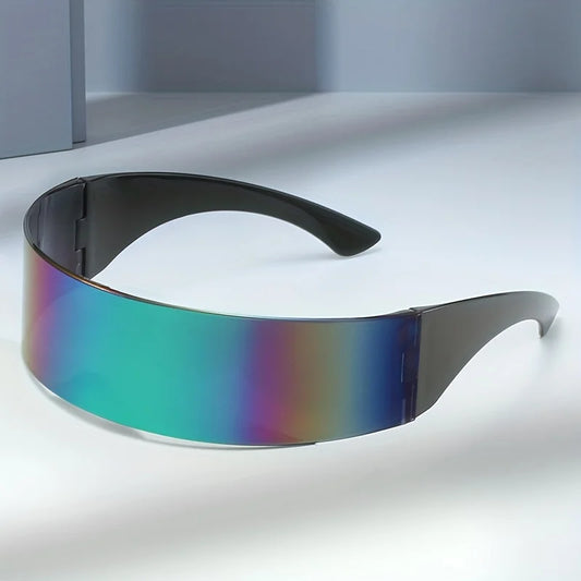 Y2K Rimless Sunglasses for Women Men Solid Color Futuristic Glasses Cyberpunk Wide Temple Eyewear UV400
