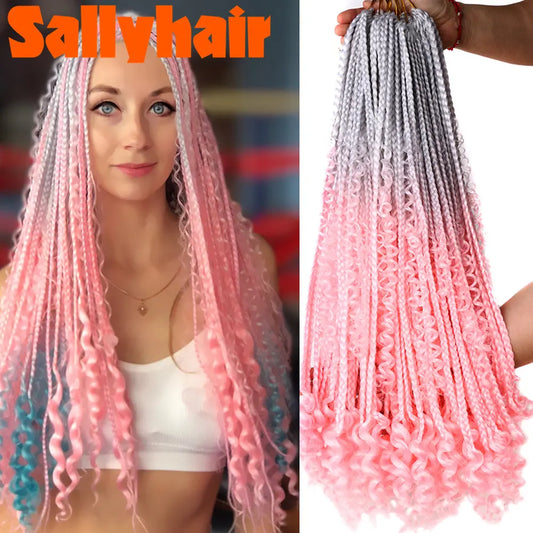 Goddess Box Braids Colorful Crochet Hair Synthetic Curly End Bohemian Box Braiding Hair Extensions Ombre Braiding Hair