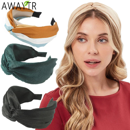 Women Headband Solid Twist Hairbands Turban Bow Knot Cross Tie Cloth Wide Hair Band Hoop Hair Accessories Lady Headdress